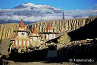 | Longtemps fermée aux étrangers, la région trans-himalayenne du Mustang est le point de rencontre entre les steppes d’Asie Centrale et les hautes montagnes du sub-continent Indien. Une ancienne enclave tibétaine aux abords du Népal, le Mustang a su préserver ses monastères et ses grottes avec ses fresques religieuses uniques dans l’art bouddhiste. | |